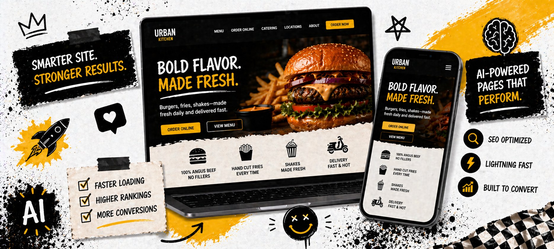 Thousands of restaurants run on patterns we have battle-tested. We design for menus, mobile ordering, and the exact flows that turn traffic into tickets.