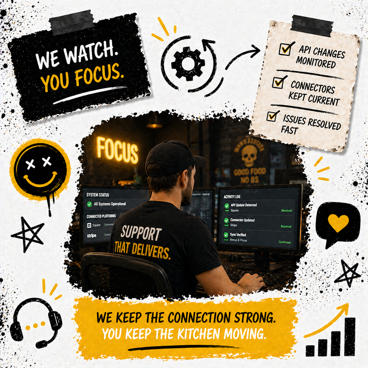 When POS vendors update APIs, we monitor and adjust connectors proactively.