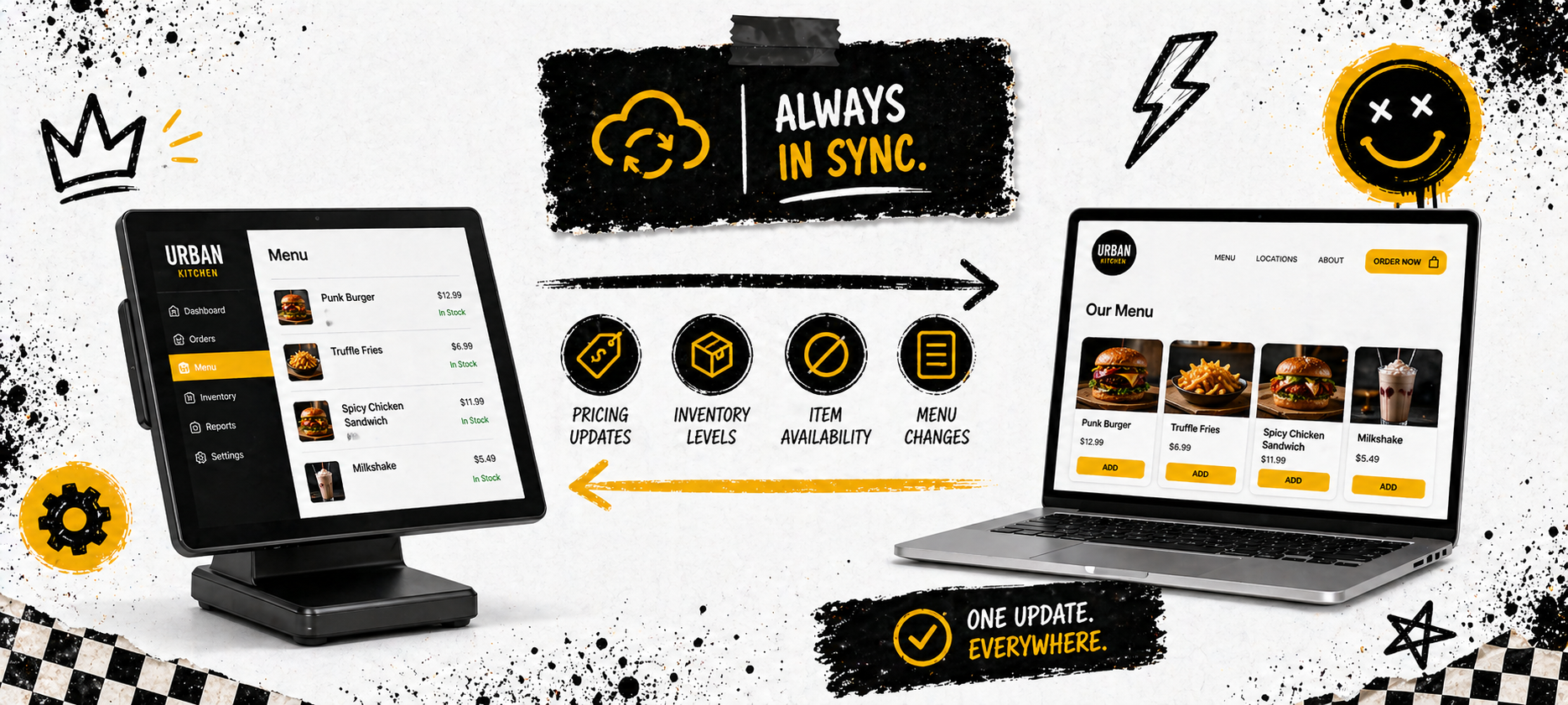 Online orders flow straight into the systems your staff already use, reducing double entry, mismatched prices, and 86'd items slipping through to guests.